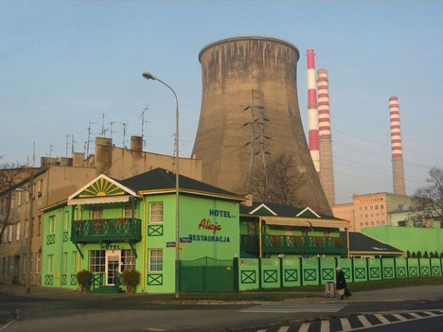 Фото сделано в разное время (на одном фото листья на деревьях, а на другом голые деревья стоят)... Гостиница до ремонта и после... По-этому и окна разные и цветов на балконе нет и ворота новые.... А дом слева в фотошопе зарисовали.....